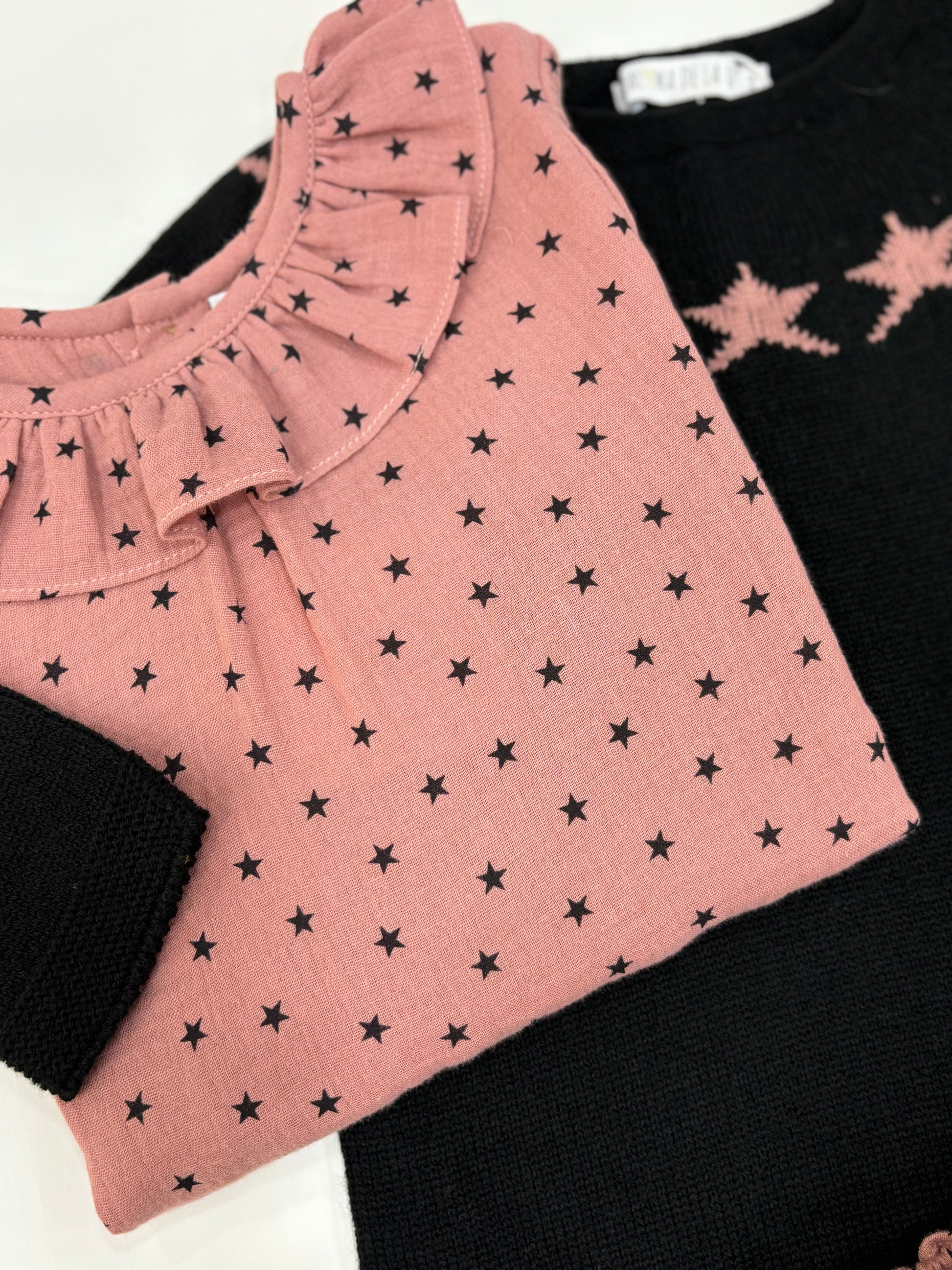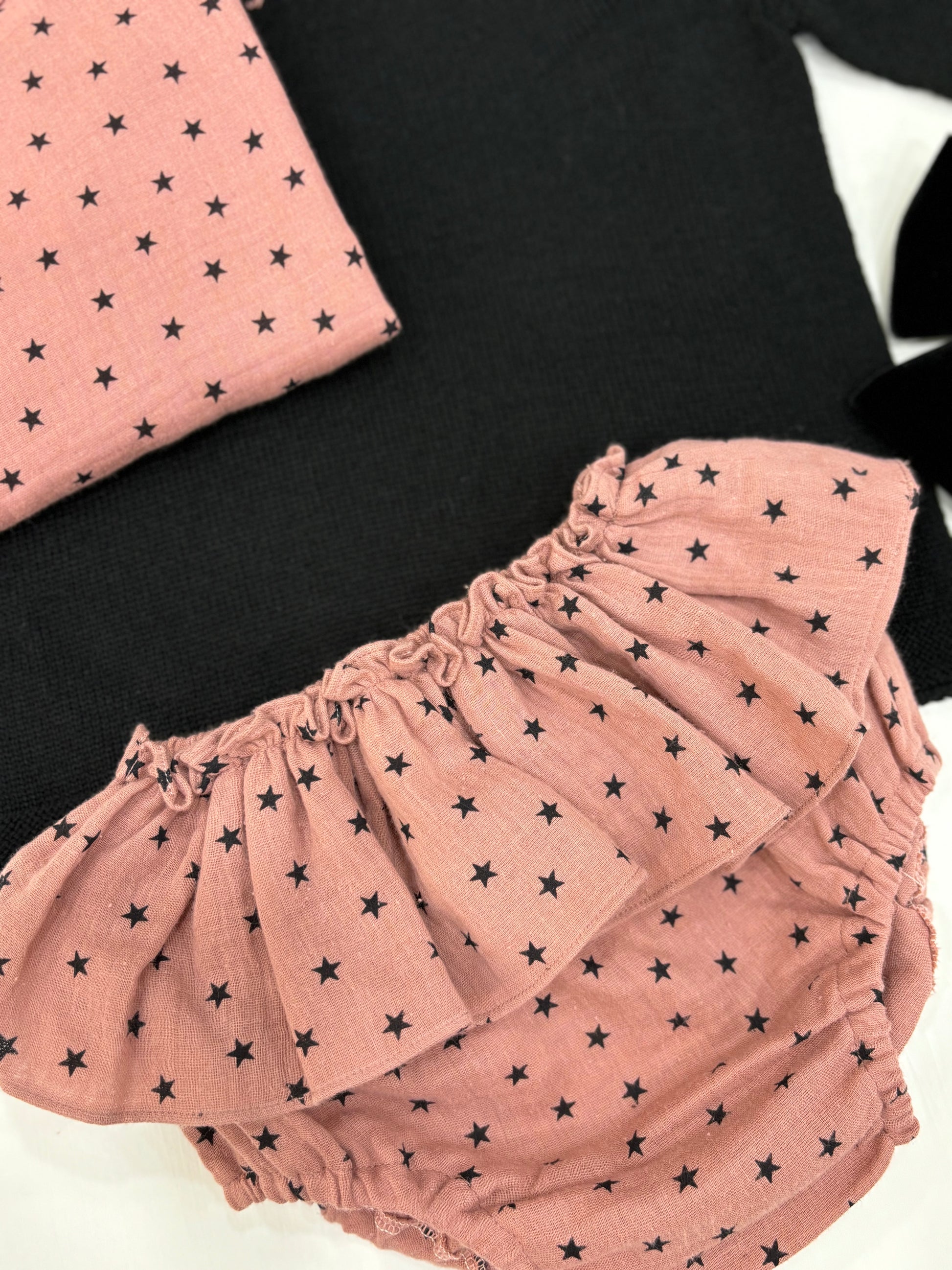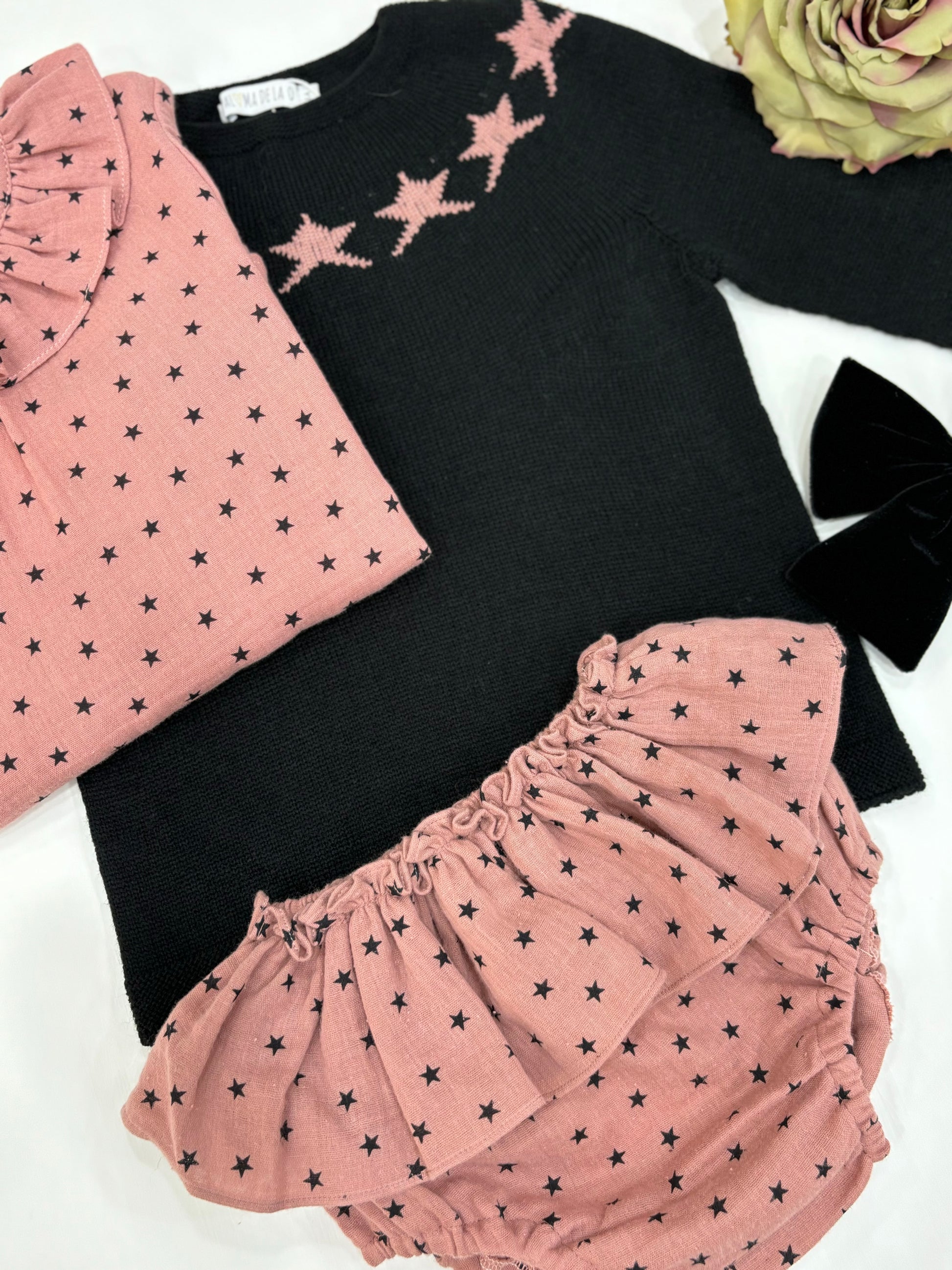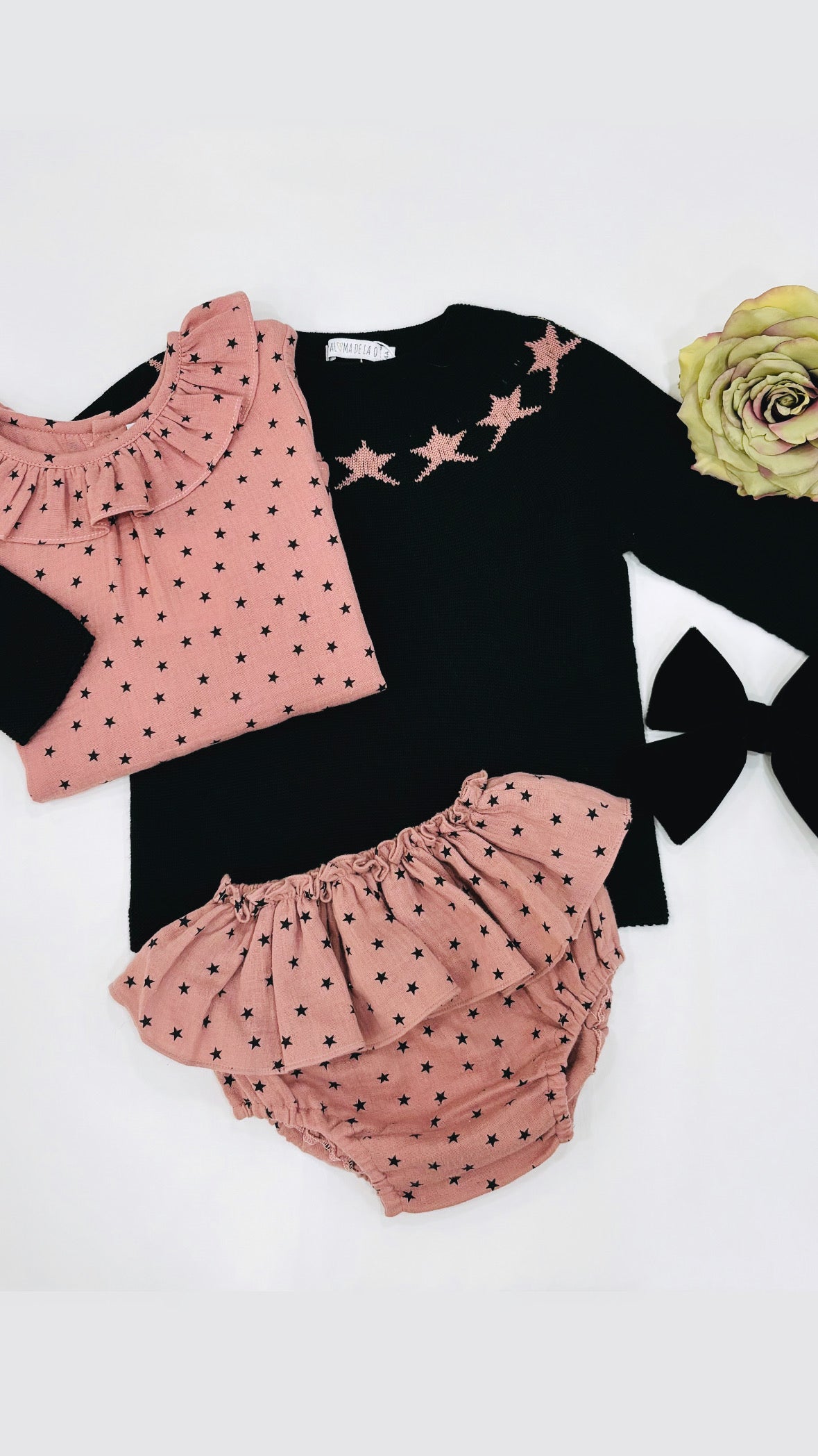 Conjunto niña de Paloma de la O, 3 piezas blusa+braguita+jersey.