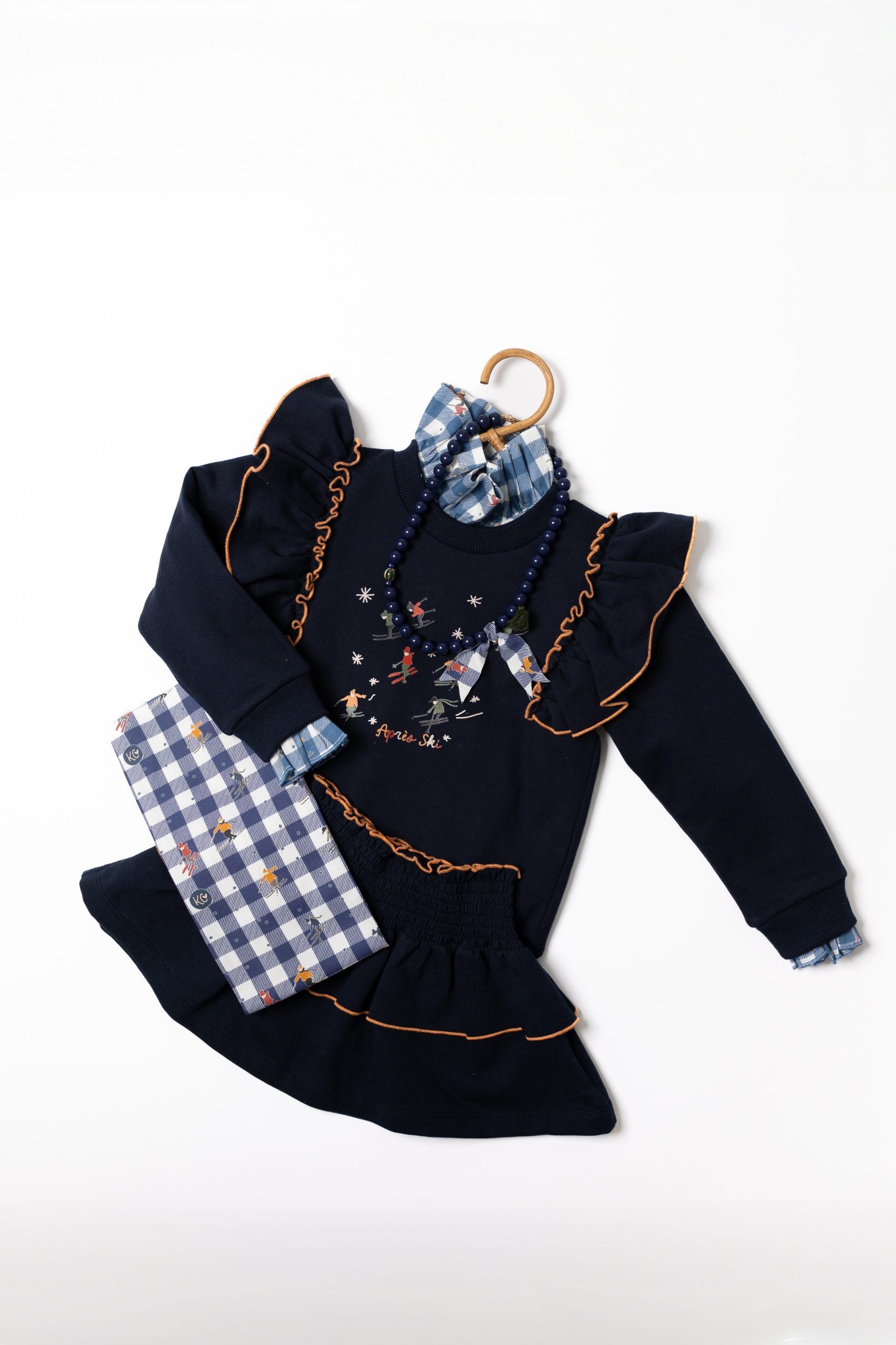 Falda infantil en algodón azul con delicados volantes. Una prenda cómoda y práctica, ideal para el día a día o para un look infantil elegante en ocasiones especiales. Confeccionado y fabricado en España.