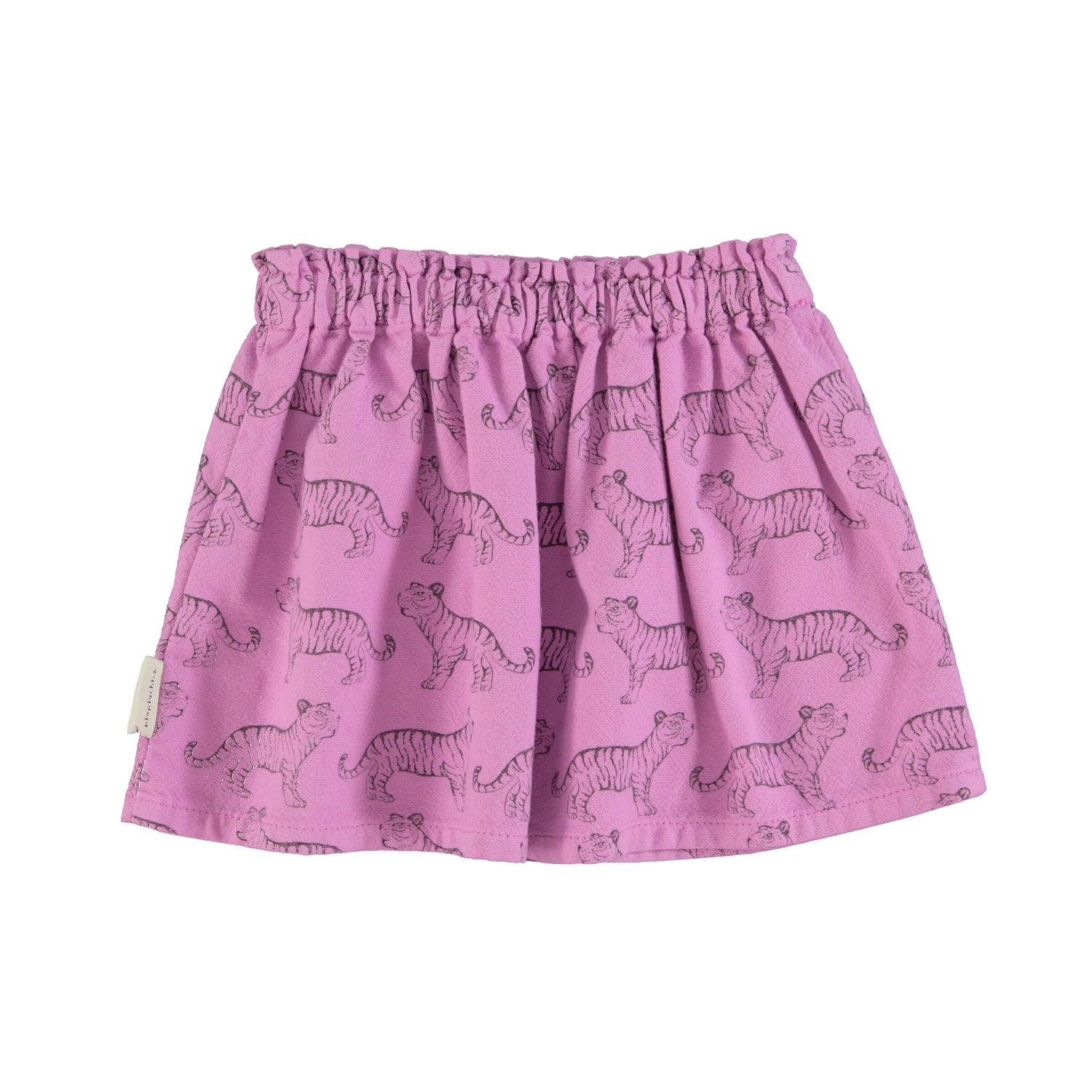 Falda color lavanda con estampado de tigres, una de las prendas mas especiales de esta temporada, con bolsillo delantero y bordado de la marca.