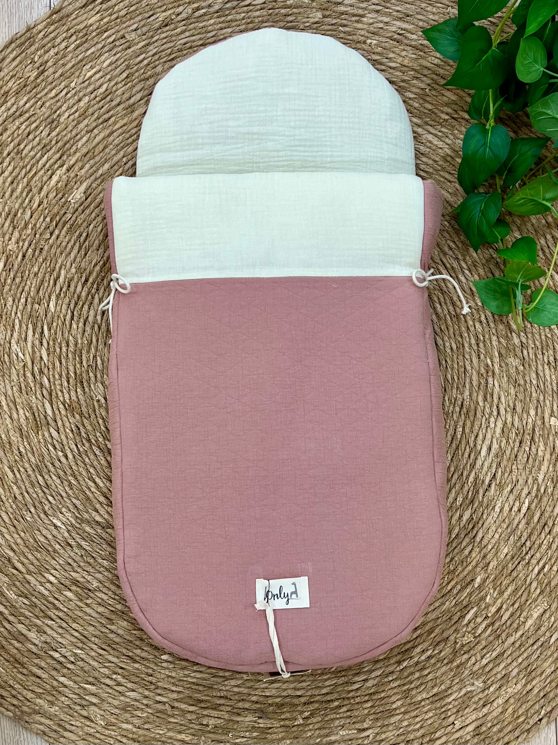 Saco cuco colección crepe de La Giraffa Bianca e Blu, en color rosa con interior en bambula beige.
