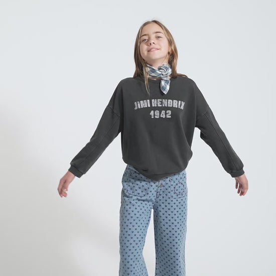 Sudadera | Negro descolorido con estampado de "Jimi Hendrix"