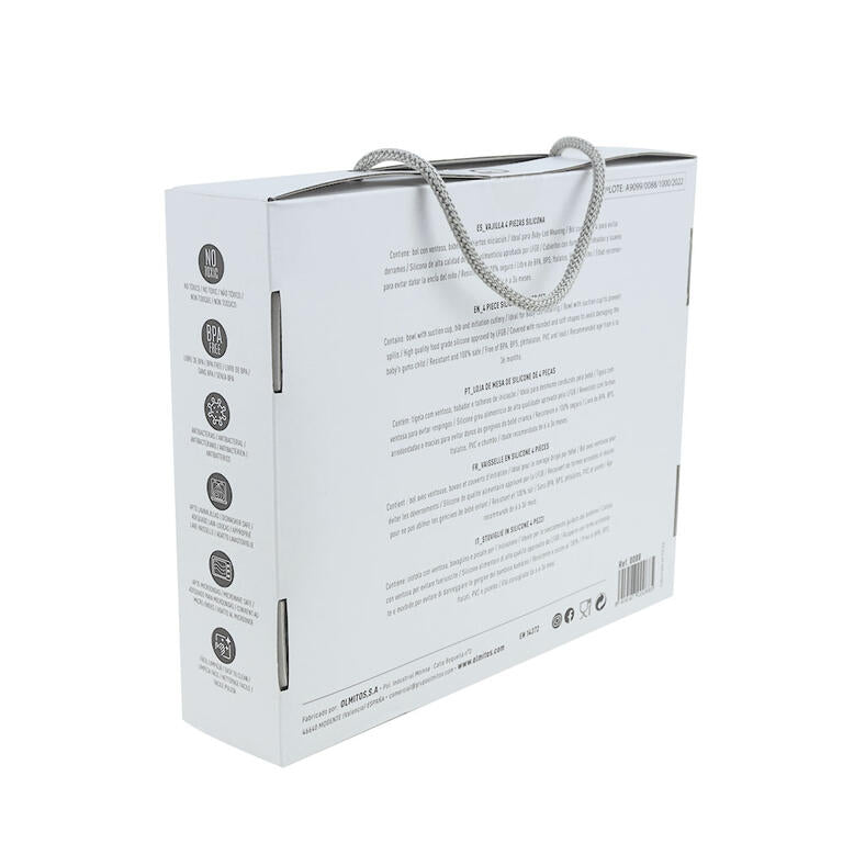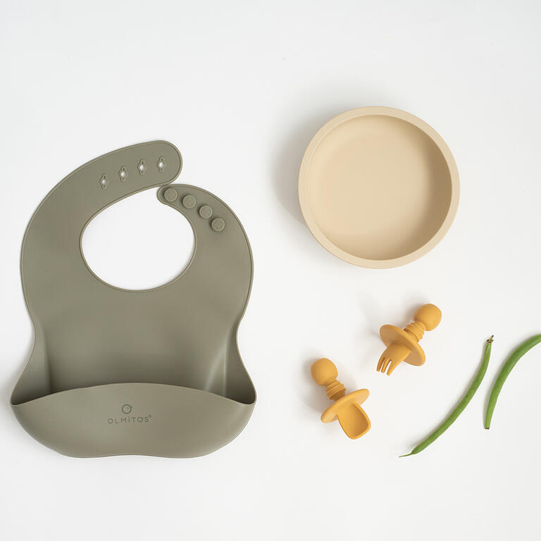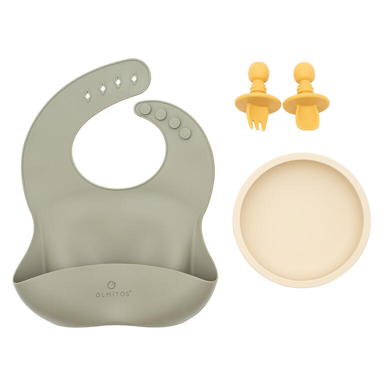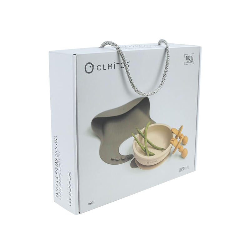 Contiene: bol con ventosa, babero y cubiertos de iniciación.
